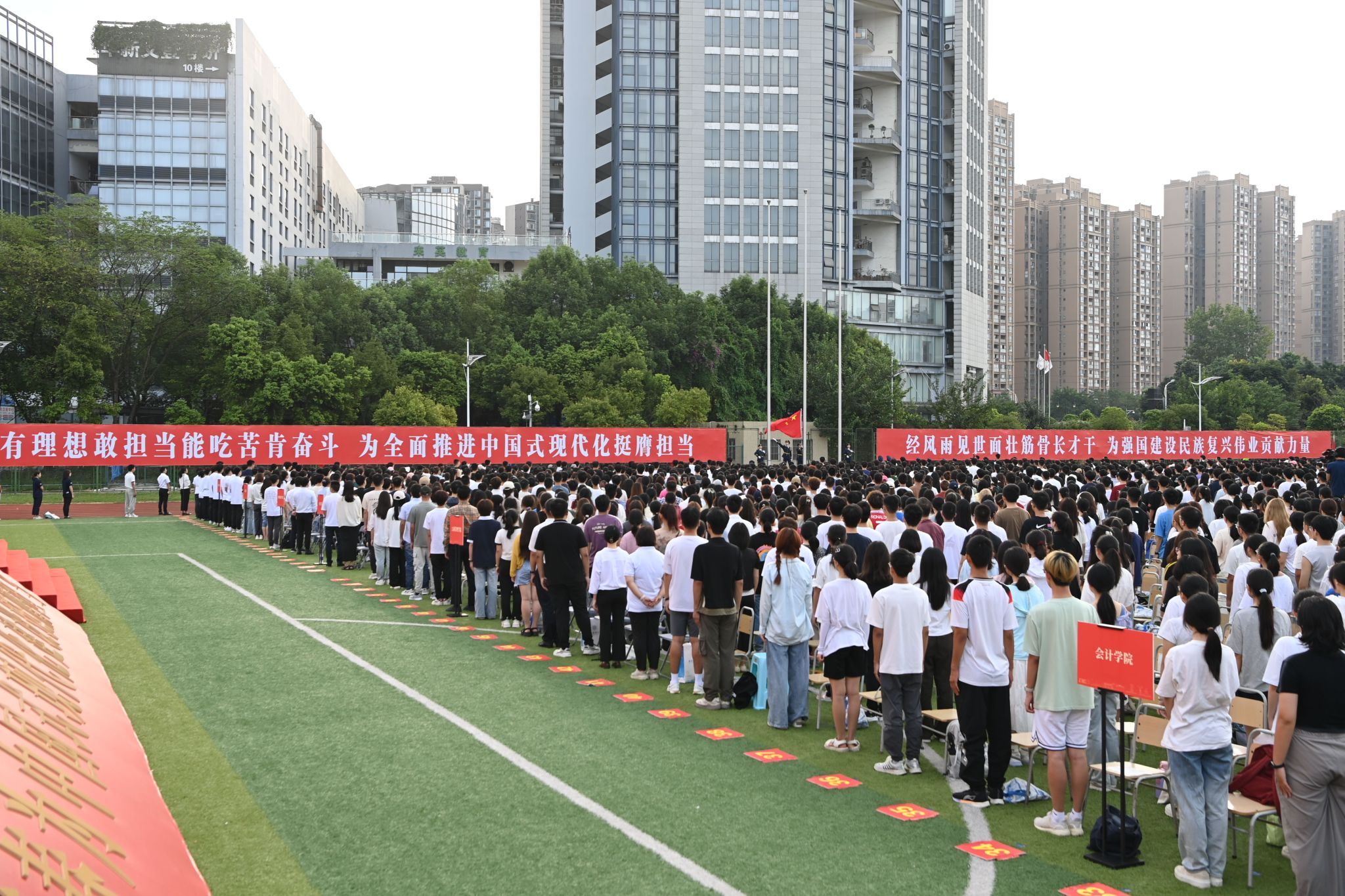 蓉城錦繡風光正好,學子凌云共赴新章。9月7日,學校舉行2024級新生開學典禮。來自祖國和世界各地的7800余名新西財人齊聚柳林校區晨曦運動場,滿懷青春熱忱,參加莊嚴儀式,聆聽師長寄語,同上一堂生動思政大課。他們將從這里踏上追逐夢想、擁抱成長的嶄新旅程,將在這里感悟百年歷史文脈,一路踏歌而行,奔騰前進!