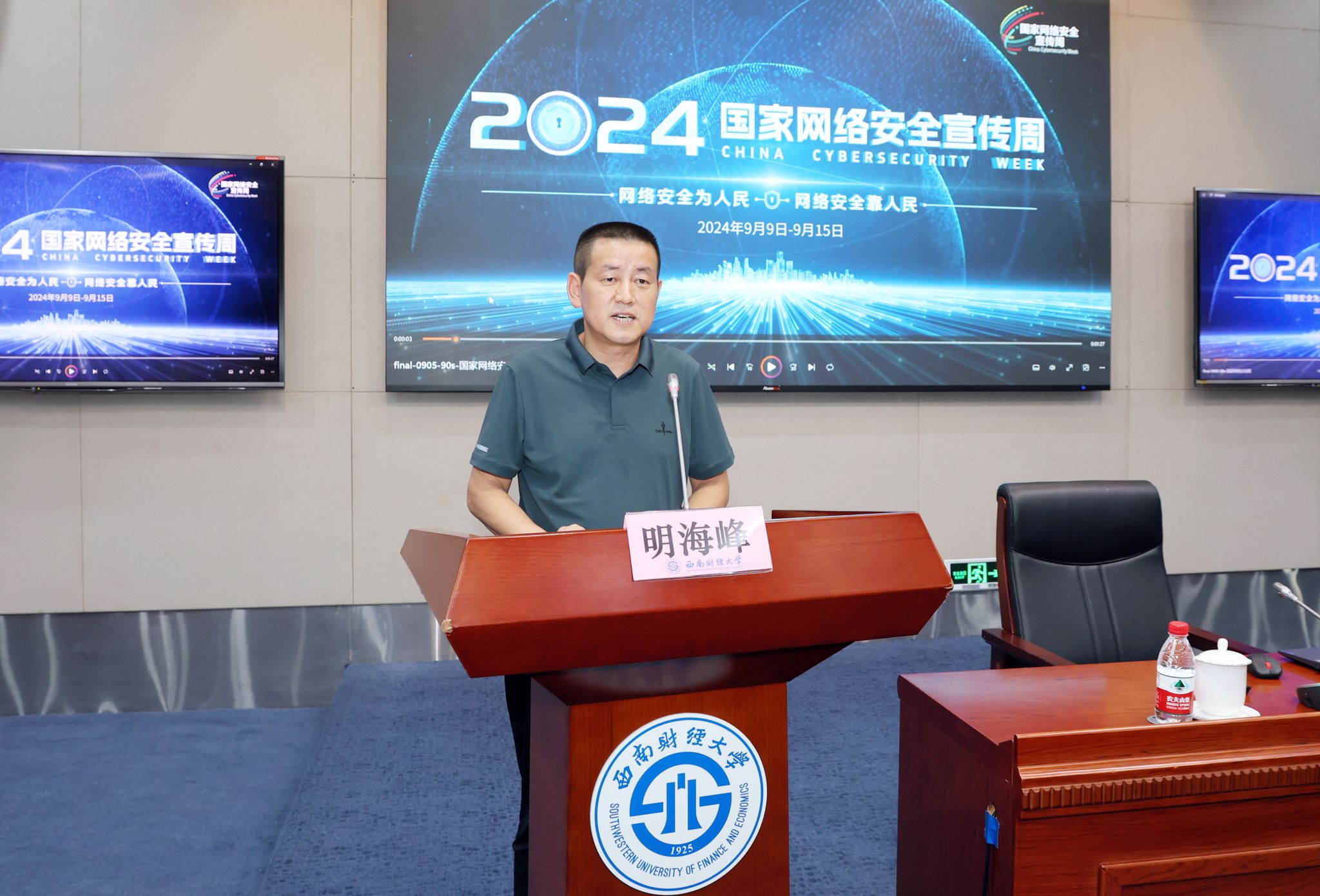 明海峰指出,2024年是習近平總書記提出網絡強國戰略目標十周年,也是習近平總書記提出總體國家安全觀十周年,要堅持以習近平總書記關于網絡強國的重要思想統攬學校網絡安全工作全局,牢固樹立總體國家安全觀,統籌發展和安全,嚴格落實網絡安全責任制,切實筑牢網絡安全屏障。他圍繞具體工作提出要求,要提高政治站位,牢牢把握網信工作的政治屬性,有力維護意識形態安全和網絡安全;要聚焦一流大學建設目標,加強形勢分析研判,營造網絡空間安全環境;要把握發展規律,推動信息賦能,堅定不移推進教育數字化行動;要強化協同聯動,打造數據基座,加快數字西財建設。