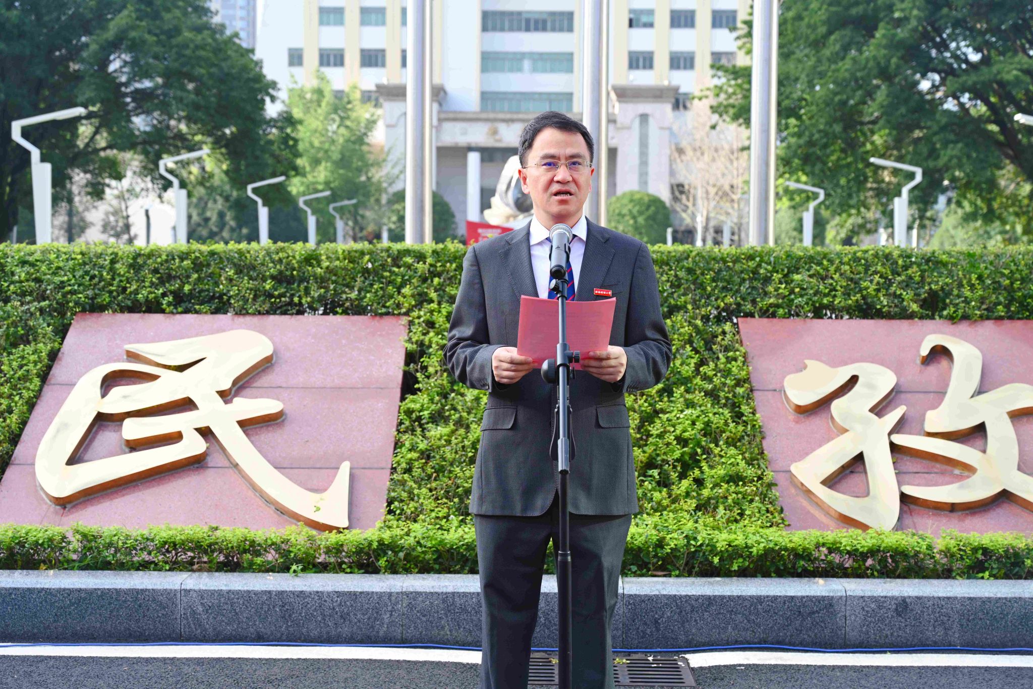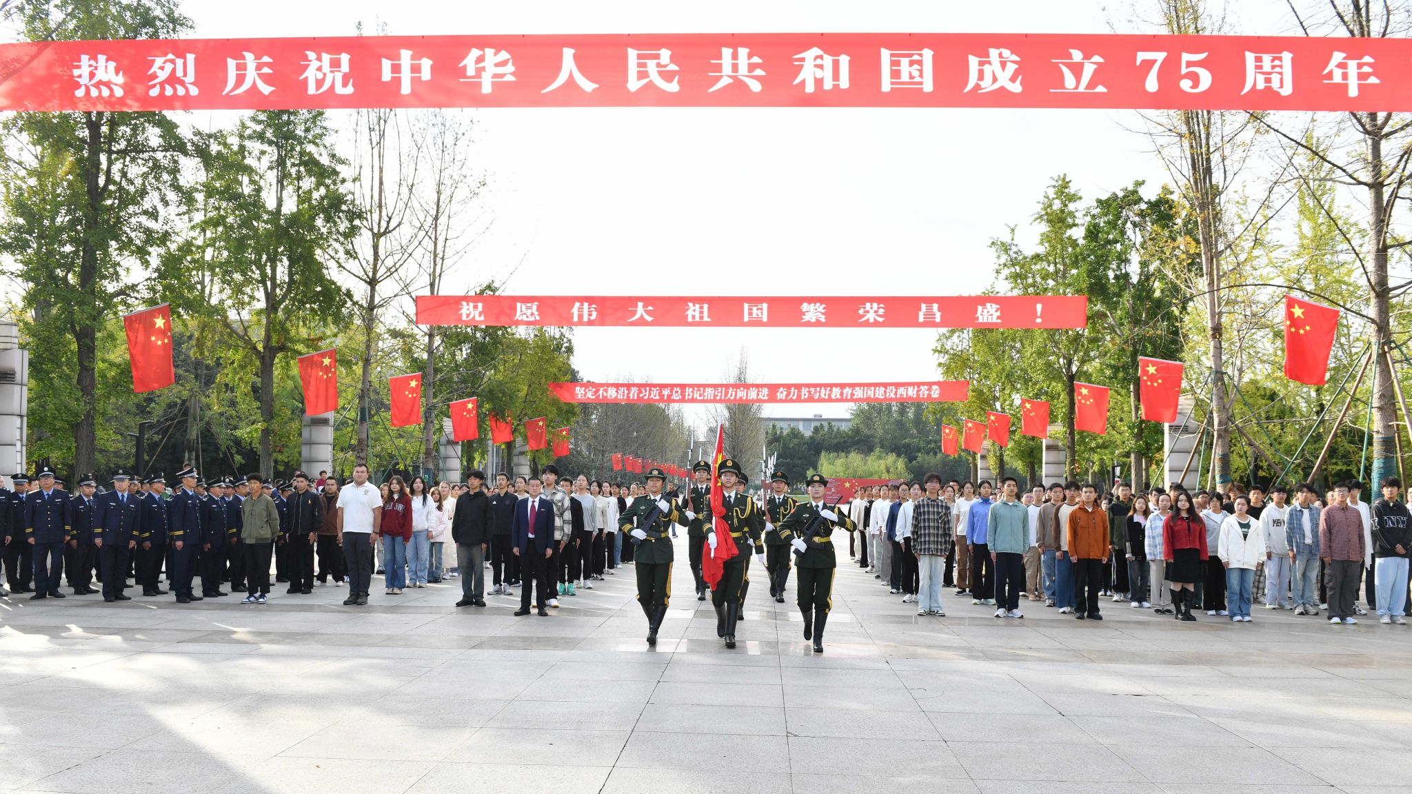 明海峰和王擎分別發表熱情洋溢的講話,向偉大祖國致以崇高敬意,向為民族獨立、人民幸福建立不朽功勛的革命先烈表示深切緬懷,向全校師生員工致以節日祝賀。他們深情回顧了75年來,在中國共產黨堅強領導下,全國各族人民同心同德、艱苦奮斗,新中國實現從站起來、富起來到強起來的偉大歷程。他們指出,偉大的祖國值得我們深深熱愛,更需要我們為之奮斗。黨的二十大首次把教育、科技、人才一體部署,二十屆三中全會作出“深化教育綜合改革”重大決策,學校在探索中國特色、世界一流高等財經教育創新發展之路上邁出了堅實步伐。明年學校將迎來百年校慶,希望廣大師生胸懷“國之大者”,心系“校之大事”,自覺增強“請黨放心、強國有我”的使命擔當,弘揚“經世濟民、孜孜以求”的西財精神,刻苦學習、愛崗敬業、甘于奉獻,加快建設財經特色鮮明的世界一流大學,以實際行動迎接學校第十四次黨代會勝利召開、獻禮百年西財,為以中國式現代化全面推進強國建設、民族復興偉業貢獻更大西財力量!