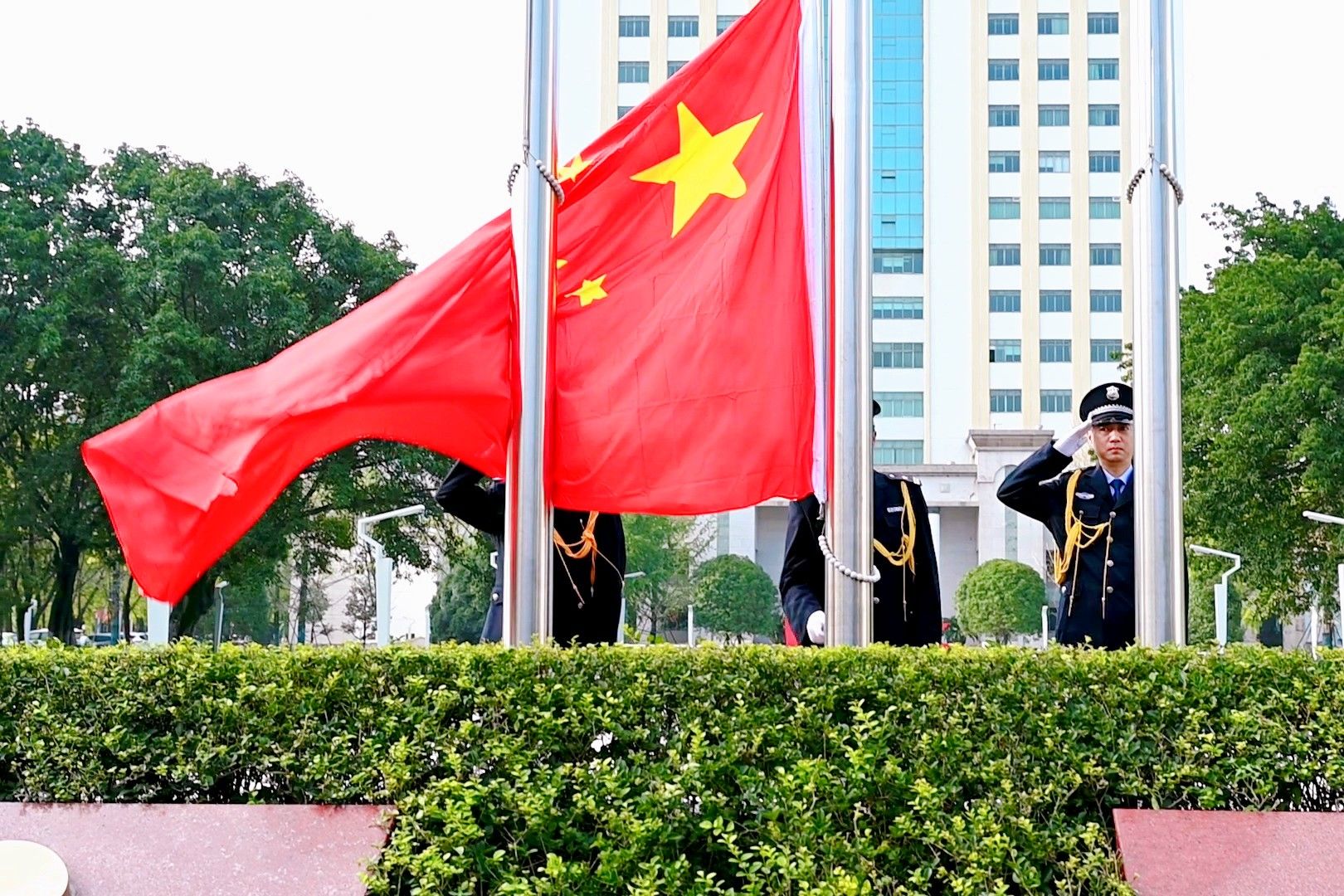 伴隨著雄壯激昂的《義勇軍進行曲》,五星紅旗冉冉升起,那一抹飄揚在長空里的中國紅,點燃每一個西財人的愛國心、報國情、強國志。師生們目光如炬,共同凝視著那面代表著國家尊嚴與榮耀的五星紅旗,共同祝愿祖國繁榮昌盛,人民幸福安康!