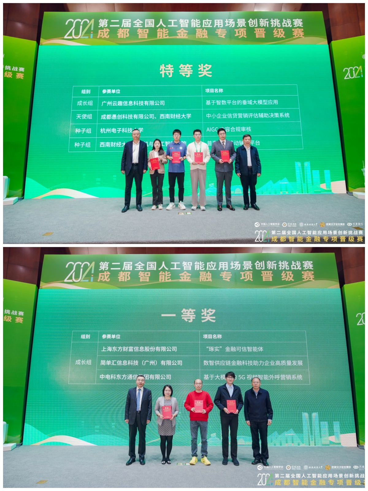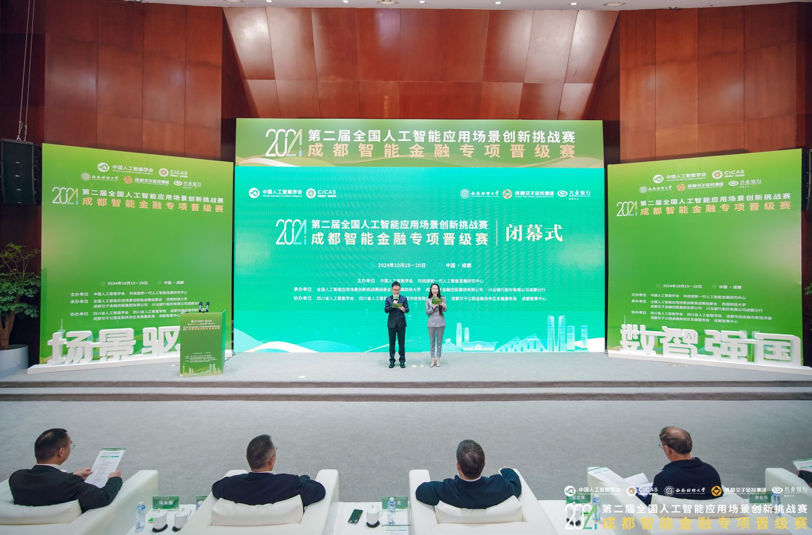 10月19日至20日,西南財經大學為主要承辦單位之一,以“場景驅動·數智強國”為主題的2024第二屆全國人工智能應用場景創新挑戰賽智能金融專項晉級賽在成都交子金融科技中心順利舉行。中國農工黨中央經濟金融委員會原副主任、中國地方金融研究院副院長湯燙,成都市委金融委員會辦公室常務副主任、市委金融工作委員會常務副書記、市地方金融管理局局長(兼)梁其洲,中國人工智能學會副理事長、北京郵電大學原副校長王文博,西南財經大學黨委常委、副校長馬永強,成都市科技局二級巡視員李良鈺,四川省人工智能學會副理事長、中科信息副總經理鐘勇等嘉賓出席大賽閉幕式暨頒獎典禮。