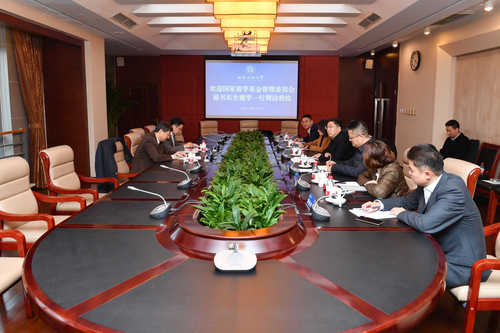 生建學充分肯定學校在國際交流與合作等方面的工作。他介紹了近年來國家公費留學政策變化趨勢,詳細闡述了“項目制”改革重要舉措。他指出,在新時代背景下,要充分利用學?,F有資源和國際合作網絡,積極設計符合國家戰略需求的留學項目,發揮更大作用,更好服務國家戰略需求。希望西南財經大學瞄準前沿領域、發揮學科優勢,努力推動國際化人才培養工作高質量發展。