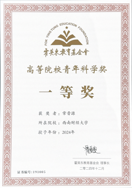 近日,霍英東教育基金會第19屆高等院校青年科學獎及教育教學獎頒獎活動在江蘇南京舉行。經教育部組織專家評審和基金會理事會暨顧問委員會聯席會議決議,全國共10名教師獲得第19屆高等院校青年科學獎和教育教學獎一等獎(各5人)。我校常晉源教授榮獲青年科學獎一等獎。