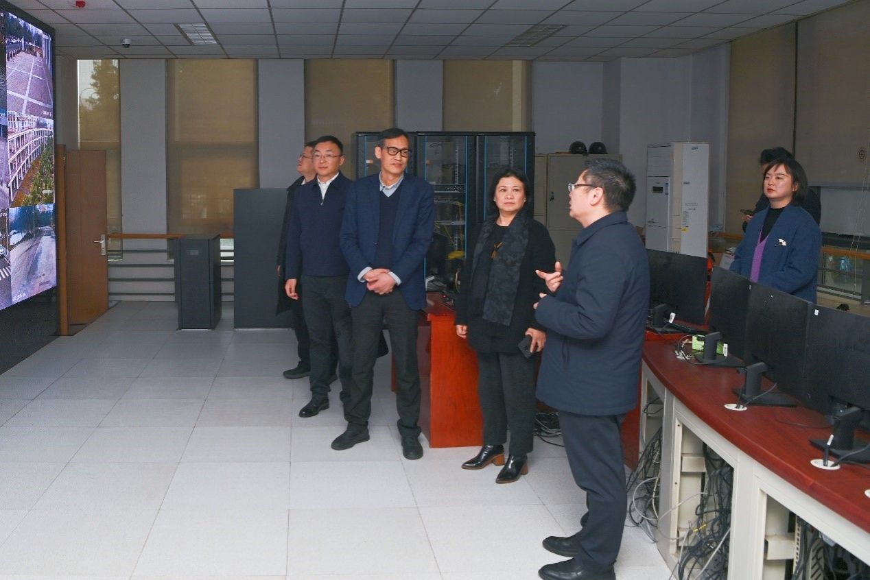 賴英莉一行深入保衛處監控室、新財經科技樓施工現場、誠正樓消防控制室、頤德樓實驗室、通博樓心理體驗中心、五谷堂等場所,深入了解智慧安防平臺建設情況,實地查看施工進度及安全管理,細致詢問消防報警處置流程及消防器材配備情況,認真檢查實驗室用電安全和食堂衛生情況,并聽取心理健康教育工作開展情況匯報。