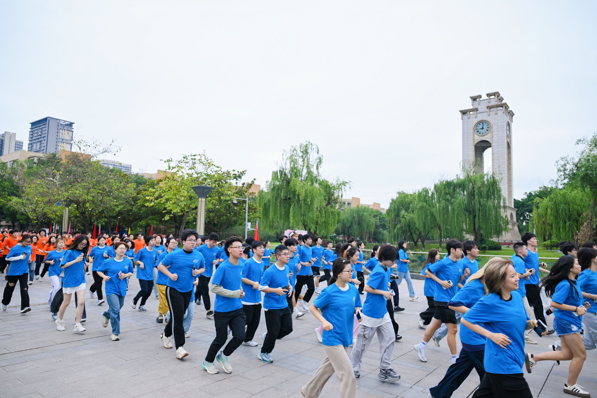 從騰驤樓到北大門的跑步路線,宛如一道世紀之光,映照著黃浦江畔綿延至浣花溪邊的日月光華,閃爍著西南財大與民族命運相連、與時代發展共振的百秩星霜。