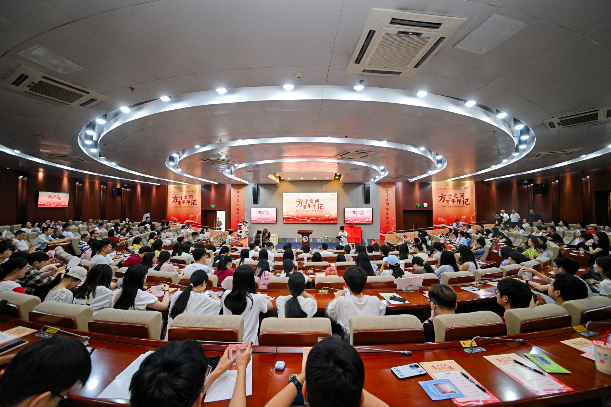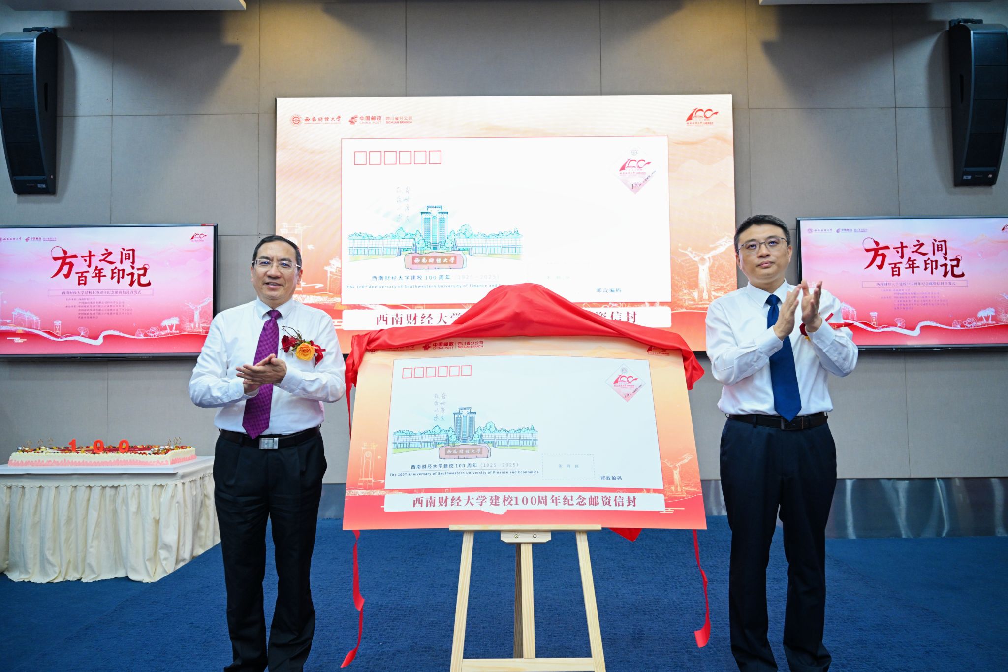 首發式上,史代敏、李業川共同為建校100周年紀念郵資信封揭幕。中國郵政集團有限公司成都市分公司總經理胡攀、學校后勤服務總公司黨委書記張諦與嘉賓和校友師生代表一道書寫明信片寄“福”西財?;顒釉跉g快的生日祝福歌聲中畫上圓滿句號。